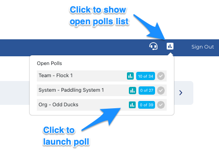 - If there is an active Assessment, a poll can be opened, continued, reopened for any of the business units